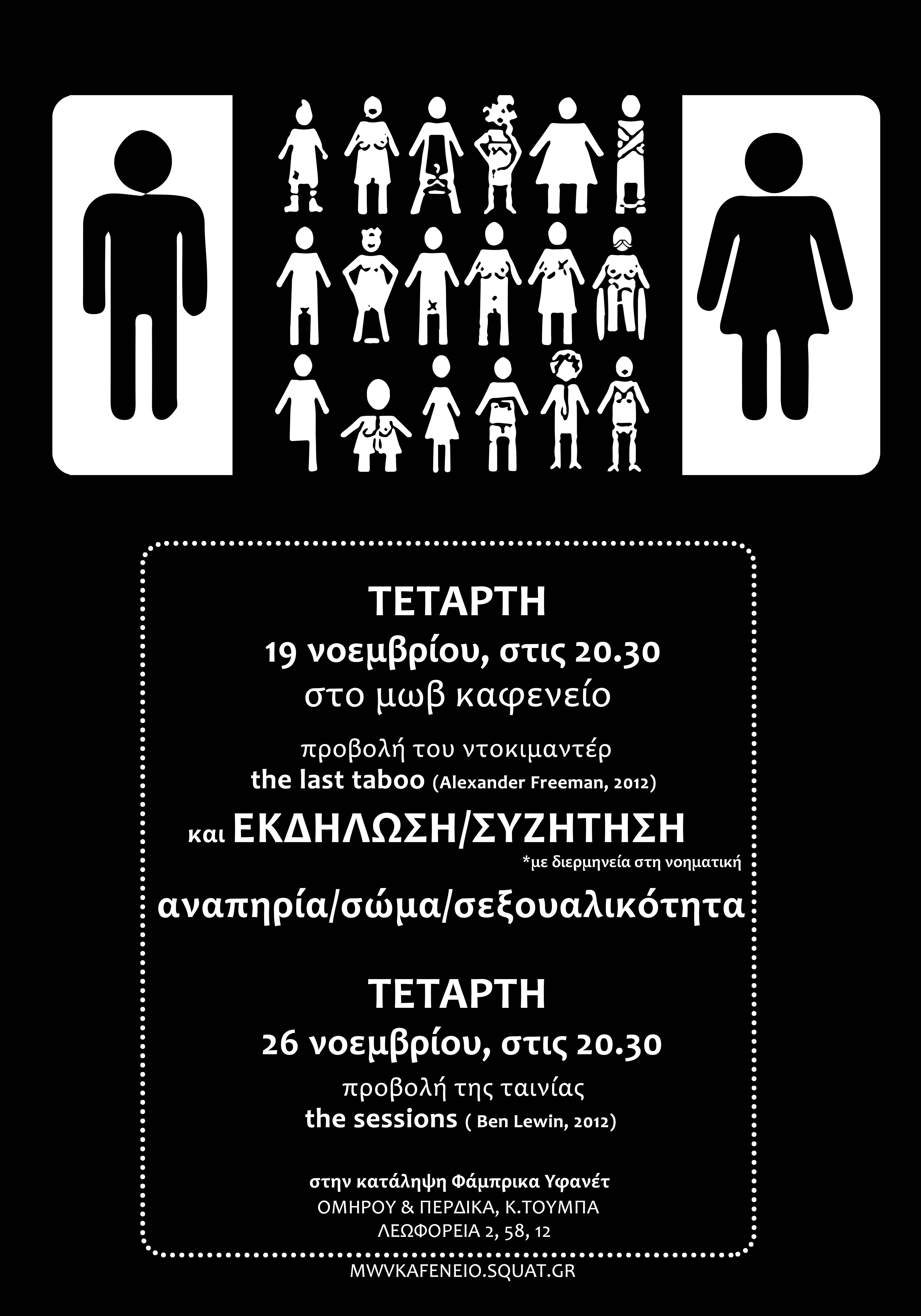 Προβολή του ντοκιμαντέρ "the last taboo" (2012) και εκδήλωση/συζήτηση "αναπηρία/σώμα/σεξουαλικότητα"