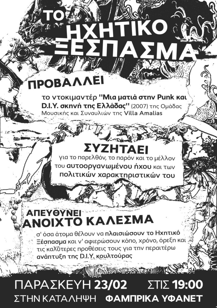 Το Ηχητικό ξέσπασμα προβάλλει, συζητάει, απευθύνει ανοιχτό κάλεσμα