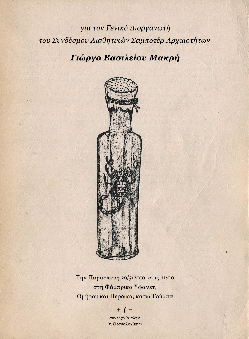 | Τίτλος | Για τον Γενικό διοργανωτή του Σ.Α.Σ.Α. Γιώργο Βασιλείου Μακρή |