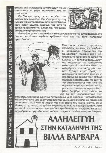 Αλληλεγγύη στην κατάληψη της Βίλλα Βαρβάρα